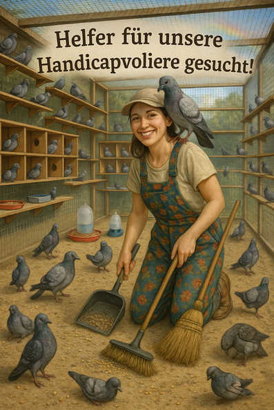 Wir suchen Sie! Sind Sie tierlieb, zuverlässig und haben ein Herz für Tauben? Wir suchen eine helfende Hand, die uns bei der täglichen Versorgung und der Reinigung der Voliere unterstützt.