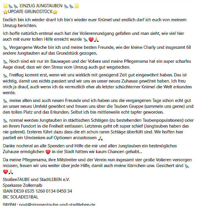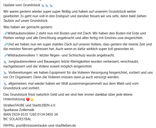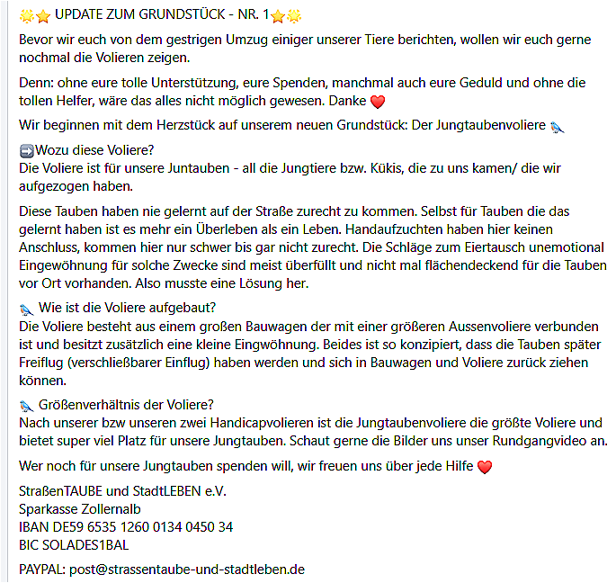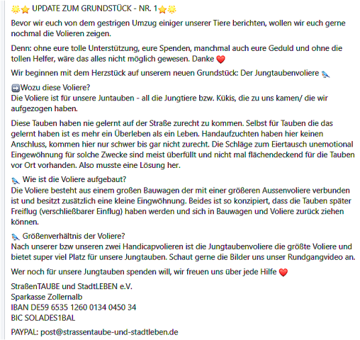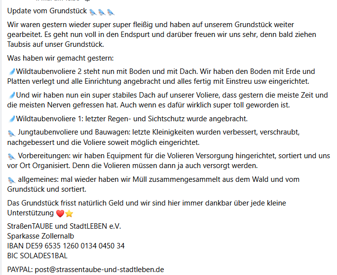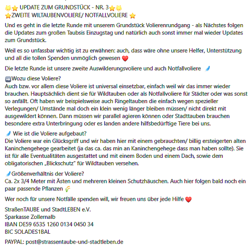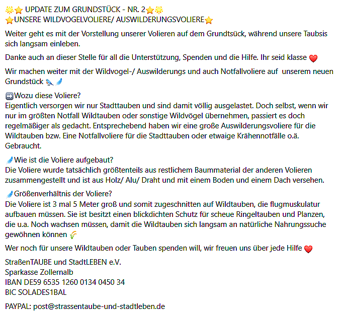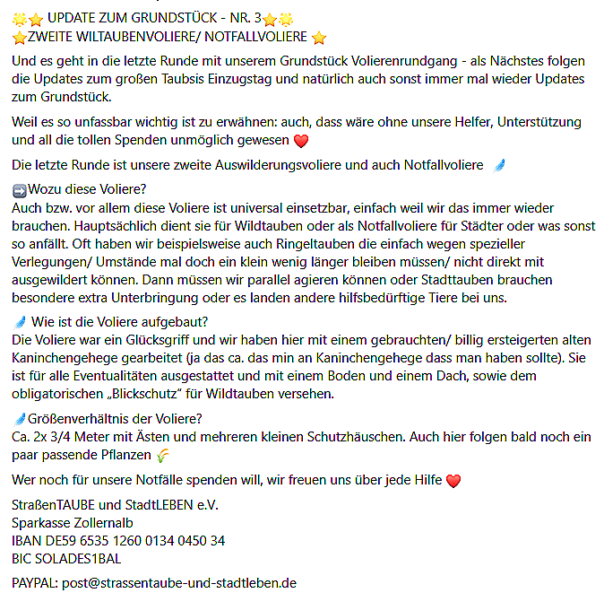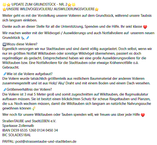 Update zum Grundstück Nr 3 Auch hier Einblicke in die Volieren! rundstück nr3.mp4 MP3-Audiodatei [2.7 MB]