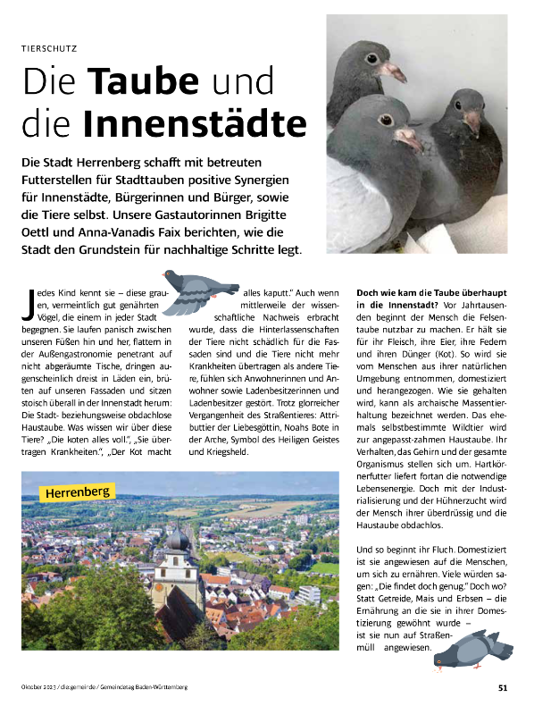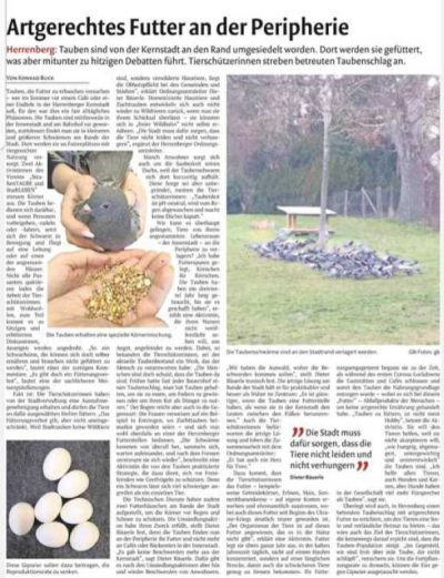 In Kooperation mit der Stadt Herrenberg betreut unser Verein Futterstellen auf außerstädtischen Grünflächen. Eine erfolgreiche Vorstufe zu später geplanten betreuten Taubenschlägen.