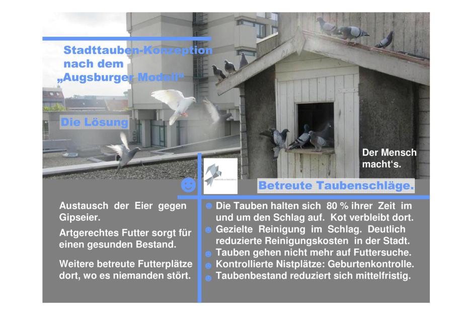 Die Einrichtung weiterer betreuter Taubenschläge nach dem Augsburger Modell wird allen Punkten gerecht