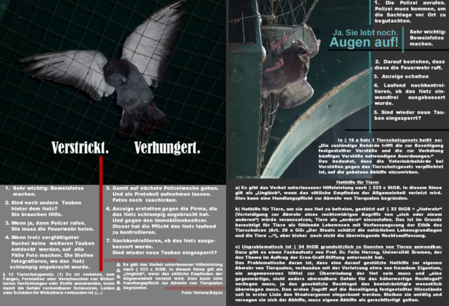 Wegen der Tierschutzwidrigkeit dieses Sachverhaltes – insbesondere wegen Verstoßes gegen §§ 1 und 13 Tierschutzgesetz – ist die Anwendung von Klebepasten als Vergrämungsmittel für Tauben zu