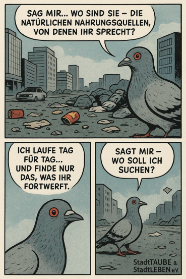Tut endlich etwas FÜR die Tauben (und damit auch für die Menschen) und richtet betreute Taubenschläge mit Fütterung ein!