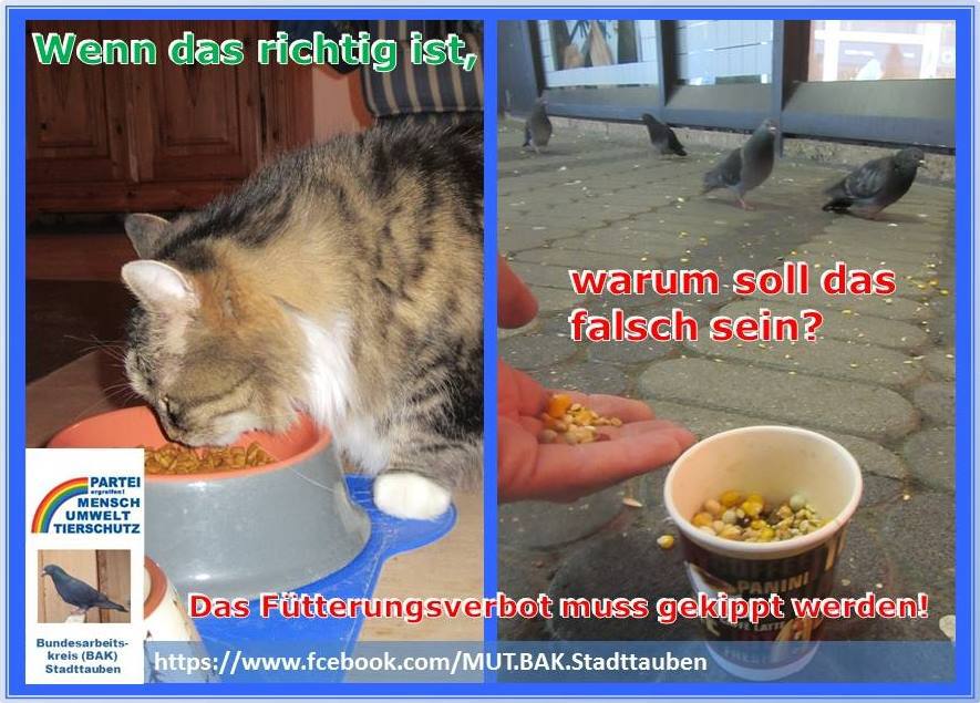 Fütterungsverbot mit artgerechtem Körnerfutter OHNE betreute Taubenschläge nach Augsburger Modell bedeutet: