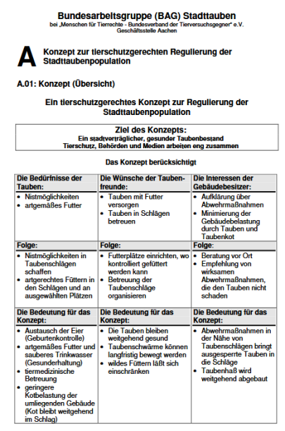 Konzept zur tierschutzgerechten Regulierung der Stadttaubenpopulation der Bundesarbeitsgruppe (BAG) Stadttauben bei „Menschen für Tierrechte - Bundesverband der Tierversuchsgegner“ e.V. Geschäftsstelle Aachen
