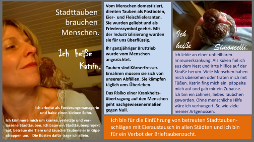 der obdachlosen Nutztaube Columba ivia forma domestica zum wiederbefriedeten Haustier die historische HaustaubenHaltung fort. Soziokulturell erhält die Taube ihre Würde zurück – und damit der Mensch s. PDF