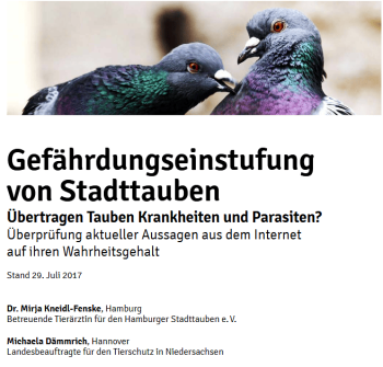 Für jede einzelne der Behauptungen wurden in einer Studie zur Gefährdungseinstufung von Stadttauben neue Erkenntnisse ausgewertet und der Wahrheitsgehalt aller dieser Behauptung überprüft. („Gefährdungseinstufung der Stadttauben? Überprüfung aktueller Aussagen aus dem Internet auf ihren Wahrheitsgehalt“. Mirja Kneidl-Fenske, Tierärztin und Michaela Dämmrich, Landesbeauftragte für den Tierschutz in Niedersachsen. Stand 29. Juli 2017.)