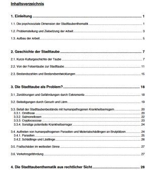 Als hauptsächliche Probleme, die durch die Präsenz von Stadttauben für den Menschen entstehen, werden angeführt