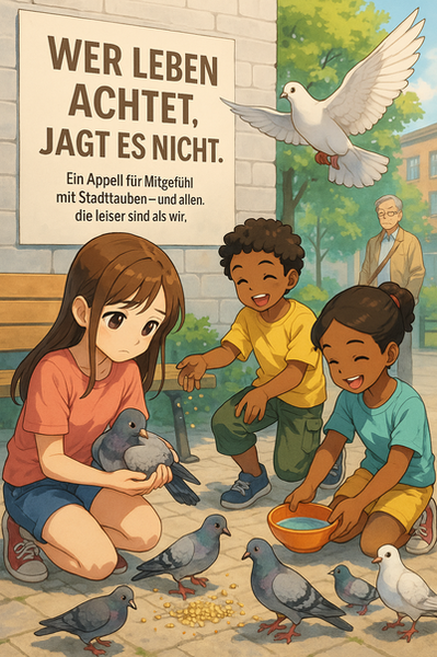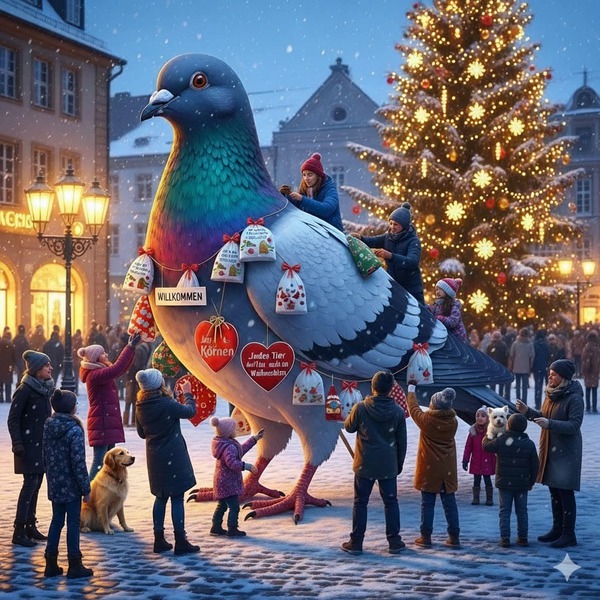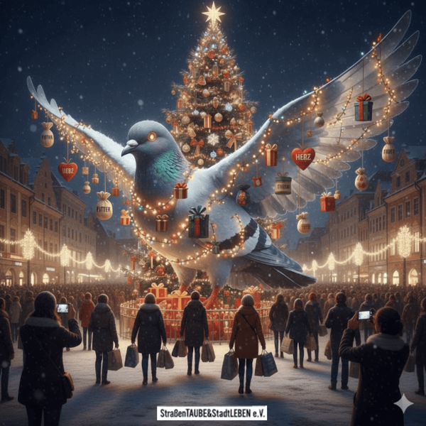 mit schweren Einkaufstüten vorbei, ganz versunken in die Vorbereitungen für ihr eigenes Fest. Am Rand des Lichtermeers jedoch, dort wo kaum jemand hinsah,froren die kleinen Stadttauben. Sie trippelten suchend über das Pflaster, hoffend auf ein paar Krümel und ein wenig Aufmerksamkeit.