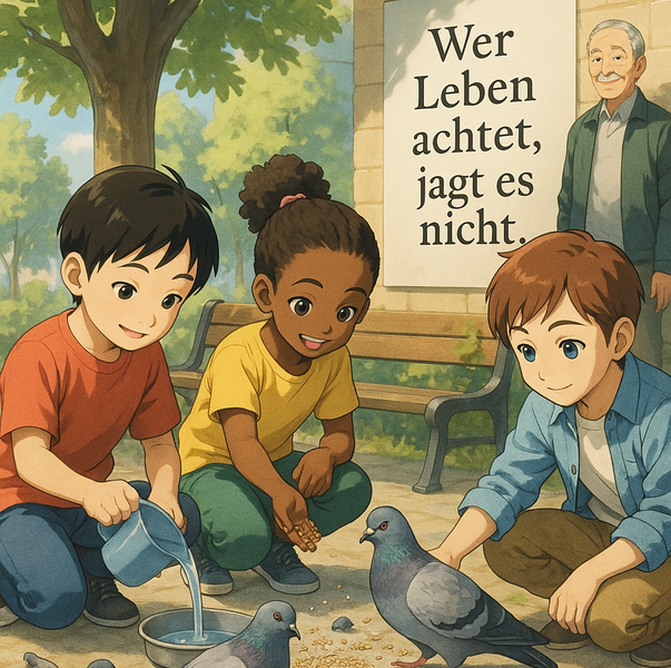 „Wer Leben achtet, jagt es nicht. Kinder helfen mit.“