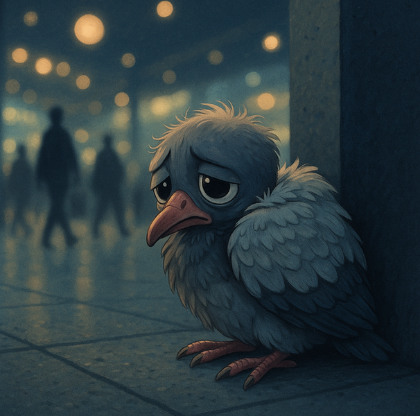 Es war einmal eine Taube, sie hieß Grauflügel, obwohl niemand sie so nannte – denn niemand nannte sie überhaupt. Sie lebte im Bauch der Stadt, dort, wo der Beton atmet, wo das Licht immer müde ist, wo die Uhren nur ticken, aber nichts bedeuten.