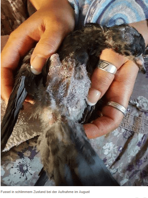 Fussel war noch nicht in der Lage selbst zu Essen und wurde somit per Hand gefüttert und mit Aufbau-und Vitaminpräperaten versorgt.